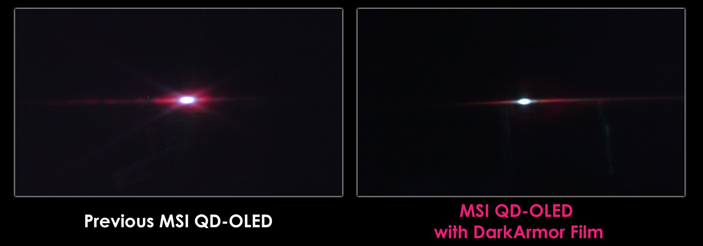 DarkArmor 能解决 QD OLED 在环境光下会泛紫或是泛红这一大“通病”,可将纯黑色表现力提升多达 40%;此外其将屏幕表面硬度从 2H 提升到 3H,抗刮擦能力提升 2.5 倍,有效抵御日常使用中的磨损,同时也更便于打理维护。