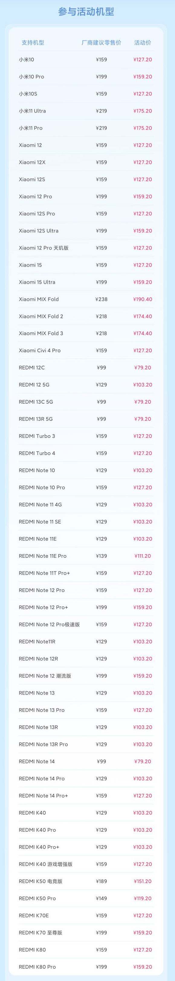 1 月 2 日消息,小米 1 月服务周已于昨日开启,54 款手机电池换新 8 折,空调清洁套装上线,活动时间为 1 月 1 日 10:00-1 月 7 日 24:00。