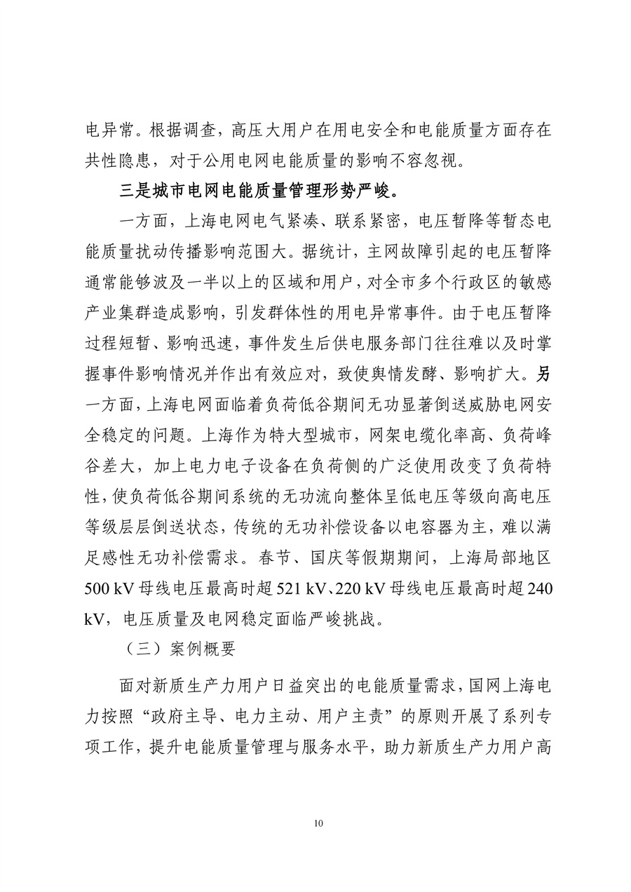 为贯彻落实《电能质量管理办法(暂行)》等文件要求,根据《国家能源局综合司关于开展电能质量管理典型案例征集工作的通知》,我局面向全国组织开展电能质量管理典型案例征集工作,从电压暂降治理、供电电压越限管控、谐波治理等方面梳理了电能质量管理工作中的成功经验和典型做法,形成《电能质量管理典型案例汇编》。现予以公布,请各有关单位认真学习借鉴推广先进经验,推动电能质量管理迈向更高水平。