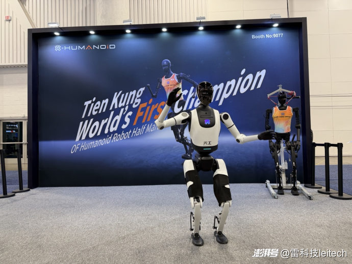 同台亮相的「具身天工 Ultra」,是全球首个人形机器人半程马拉松冠军、全球首个人形机器人运动会百米短跑项目冠军。