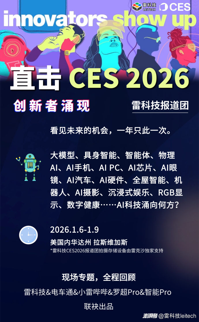 相关内容除了自有渠道外,还被腾讯、网易、头条、百度、36kr等平台重点推荐。您可以在主流平台搜索“雷科技 CES”回顾CES2026的核心内容。