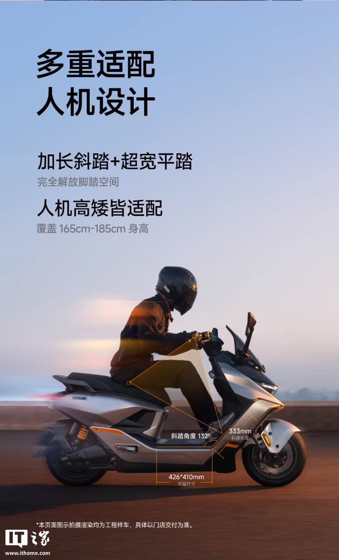 据介绍,这款产品配备 72V 90Ah 超强大单体锂电池,续航可达 195km,配备 12 寸满盘电机,峰值功率可达 16kW,外观采用“宽体猎跑”设计语言,灵感源自顶级性能跑车,拥有加长斜踏与超宽平踏,可覆盖 165cm-185cm 身高用户的需求。