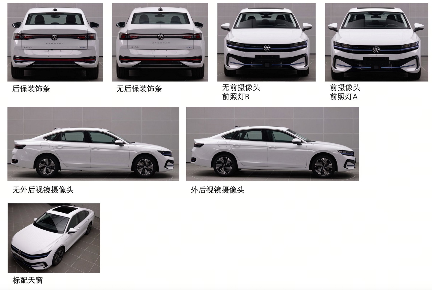 注意到,全新迈腾 PHEV 基本延续了在售迈腾 B9 的设计,但在细节之处加入了诸多 PHEV 特色标识。车头部分新增蓝色饰条以及蓝色 PHEV 标识,车尾同样设有 PHEV 标识,以彰显其新能源车型的身份。车身尺寸方面,全新迈腾 PHEV 的长宽高分别为 4990 毫米、1854 毫米、1491 毫米,轴距 2872 毫米。作为参考,在售迈腾 B9 长宽高分别为 4990/1854/1487 毫米,轴距为 2871 毫米。