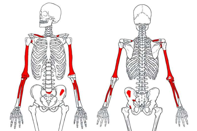 新报告的这具能人骨骼化石年代测定在 202 万至 206 万年前之间,包括两侧锁骨、肩胛骨碎片、两侧上臂骨(肱骨)、两侧前臂骨(桡骨和尺骨)、骨盆碎片以及部分骶骨。