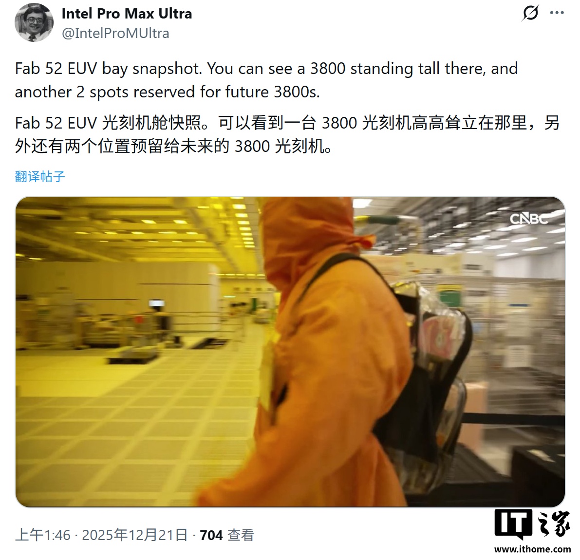 12 月 24 日消息,媒体 CNBC 于 12 月 21 日发布博文,参观了英特尔在美国的 Fab 52 工厂,指出在与台积电争夺全球先进制程主导权的竞赛中,英特尔在美国本土市场取得显著优势。