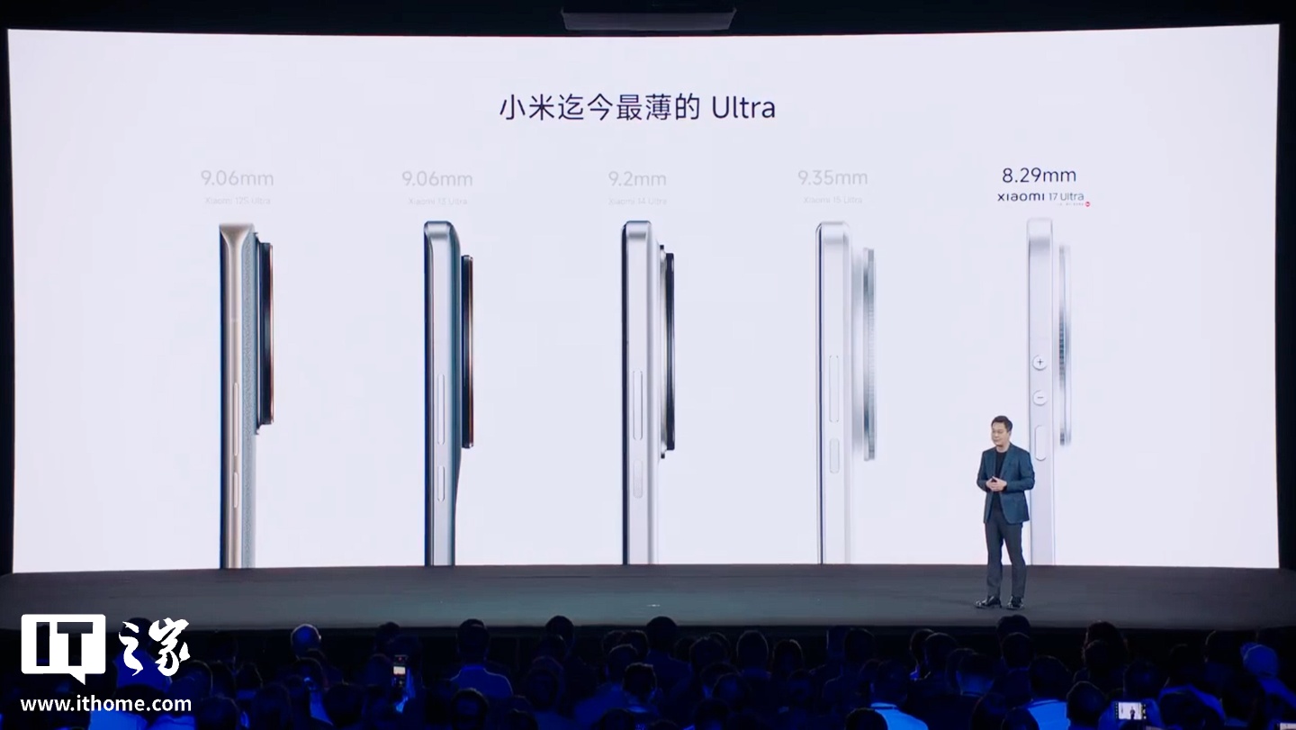 12 月 25 日消息,在今晚的小米 17 Ultra 发布会上,卢伟冰透露,小米 17 Ultra 是小米 Ultra 系列首款 2D 直屏机型,也是迄今最薄的 Ultra,厚度仅 8.29mm。