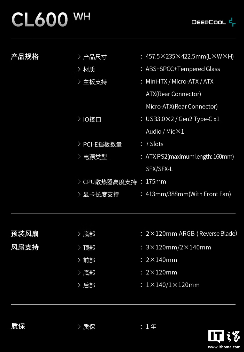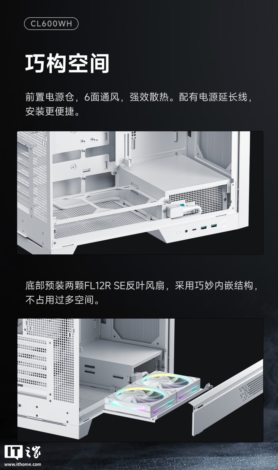 12 月 24 日消息,九州风神现已在京东上架 CL600 机箱,该机可选黑白双色,黑色定价 599 元,白色定价 699 元。