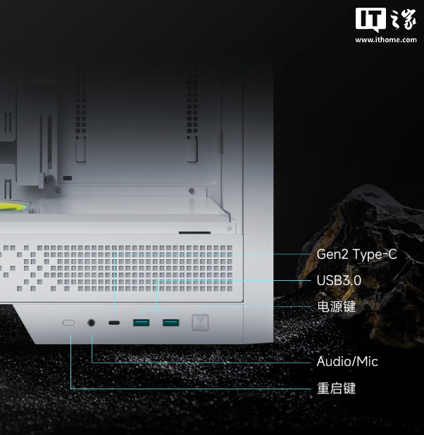 接口方面,该机提供 1 个 USB-C 接口、2 个 USB-A 3.0 接口、1 个 3.5mm 音频接口。