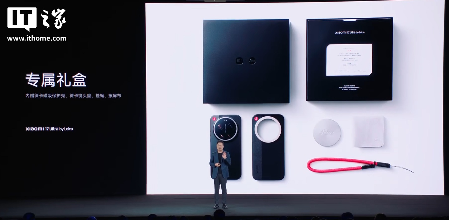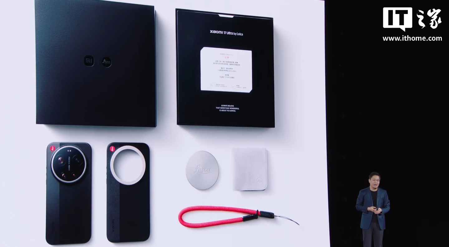 12 月 25 日消息,小米 17 Ultra 新品发布会正在进行当中,除了常规版本外,小米还带来了小米 17 Ultra 徕卡版,机身铭刻徕卡红标,搭载全新大师变焦环。现已开启预售,12 月 27 日早 10 点正式开售。