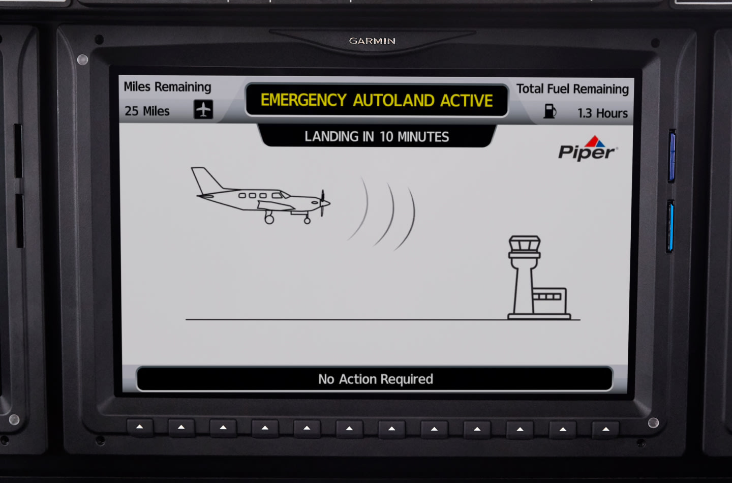 根据佳明官方介绍,Garmin Autoland 系统一旦启动后会立即规划出一条去往较适合着陆的机场和跑道的飞行路线,同时避开地形和恶劣天气干扰,启动并自动着陆。