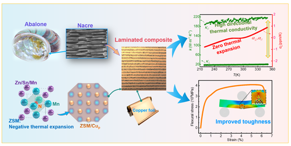 目前,将负热膨胀材料和金属铜、铝等进行复合,通过“正-负相抵”实现零膨胀特性,是该类材料研发的核心技术路线。然而,现有负热膨胀材料多为陶瓷或金属间化合物,存在脆性大、热导率低等固有缺陷,且传统研究多采用负热膨胀颗粒均匀散布于金属基体中。这种弥散构型设计虽能实现零膨胀,却严重牺牲了复合材料的韧性与导热性能,难以满足复杂工况下的应用需求。因此,如何在实现零膨胀的同时,协同提升导热与力学性能,始终是制约零膨胀复合材料发展的关键瓶颈之一。