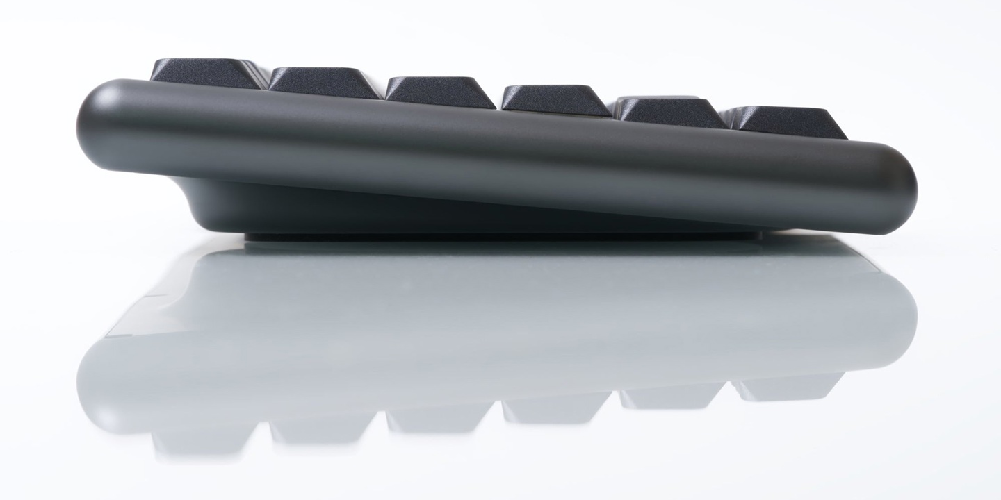 Chosfox Vero75 采用 84 键 75% 配列,数字键与 F 功能键对齐排列。其前高 15mm、后高 25mm,倾斜角度 5°。
