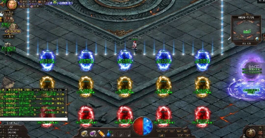 这些广告都源自“传奇”类游戏。国内最早的“传奇”由上海盛大网络于 2001 年引进国内,定名为《热血传奇》,很快在网吧内风靡一时。“传奇”定义了中国网游的一种早期形态:战士、法师、道士 3 种职业划分,简洁的红蓝药水球 UI,以及“练级、PK、刷宝”的核心玩法循环。如今,《热血传奇》的官方版本早已出于种种原因而迭代得面目全非,但由此衍生出的无数“传奇”私服,却依然滋养着一个庞大的玩家群体。