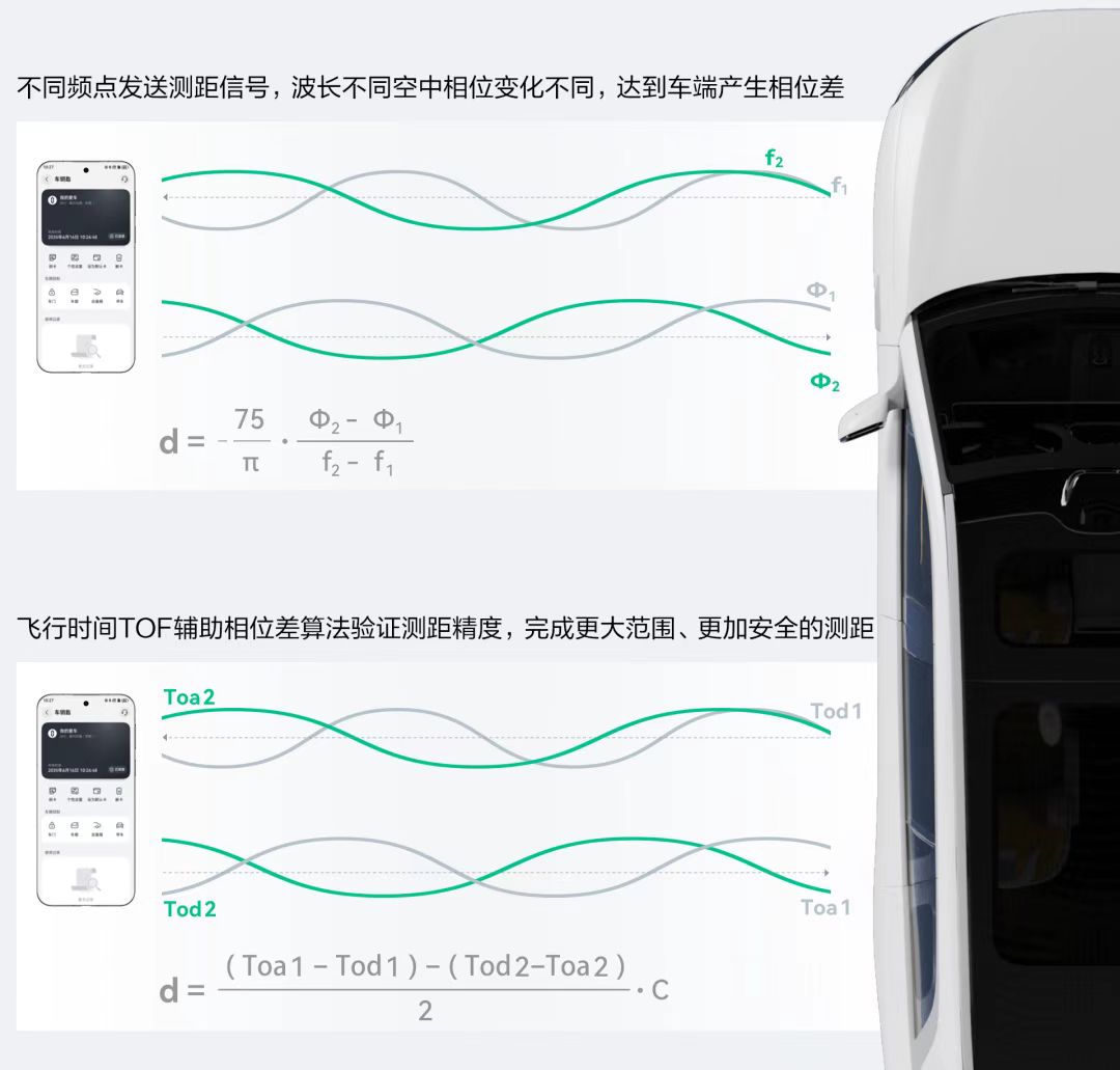 而星闪数字车钥匙利用相位差与飞行时间(TOF)测距技术,将定位精度相比传统蓝牙提升了 5 倍(达到厘米级),解闭锁精准度提升了 6 倍。同时,TOF 技术能获取真实距离,有效抵御中继攻击等虚假信号,构建了严密的安全机制。