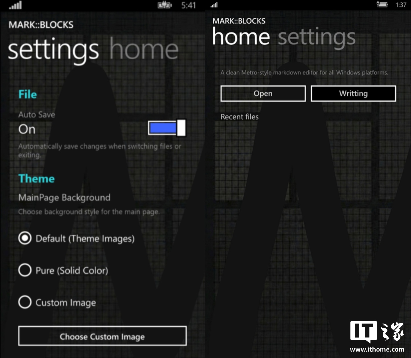 据介绍,该应用支持 Windows Phone 8.1+、Windows 8.1+、Windows RT 8.1+,支持 Markdown 书写、Markdown 预览查看、Ctrl+F 查找、导出为 HTML 等功能,提供支持自定义主页背景、较为丰富的磁贴样式,开发者预告后续还将进一步完善应用。