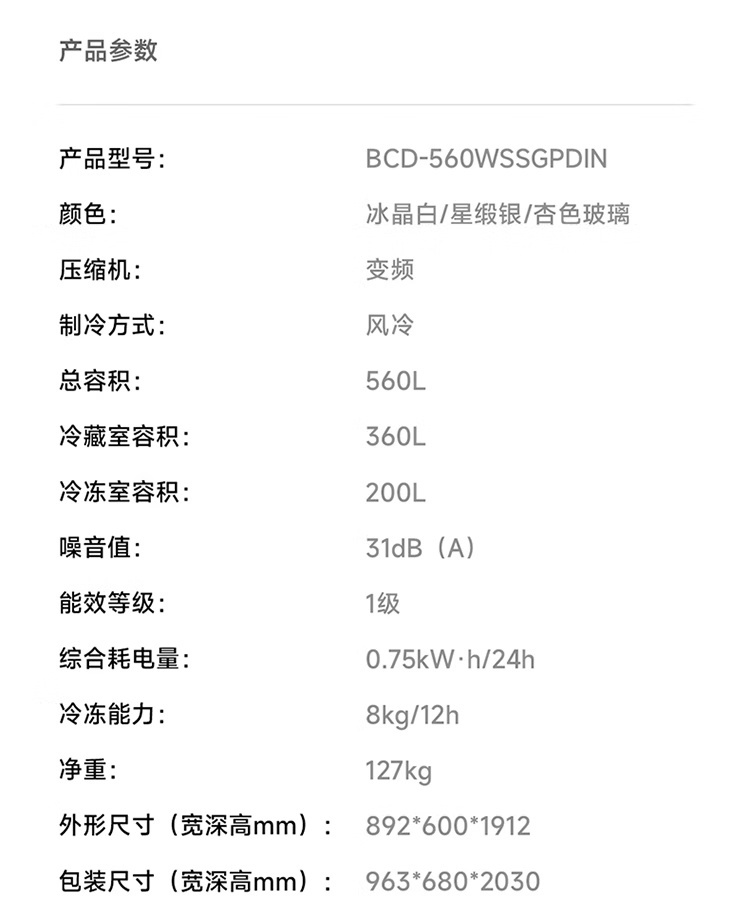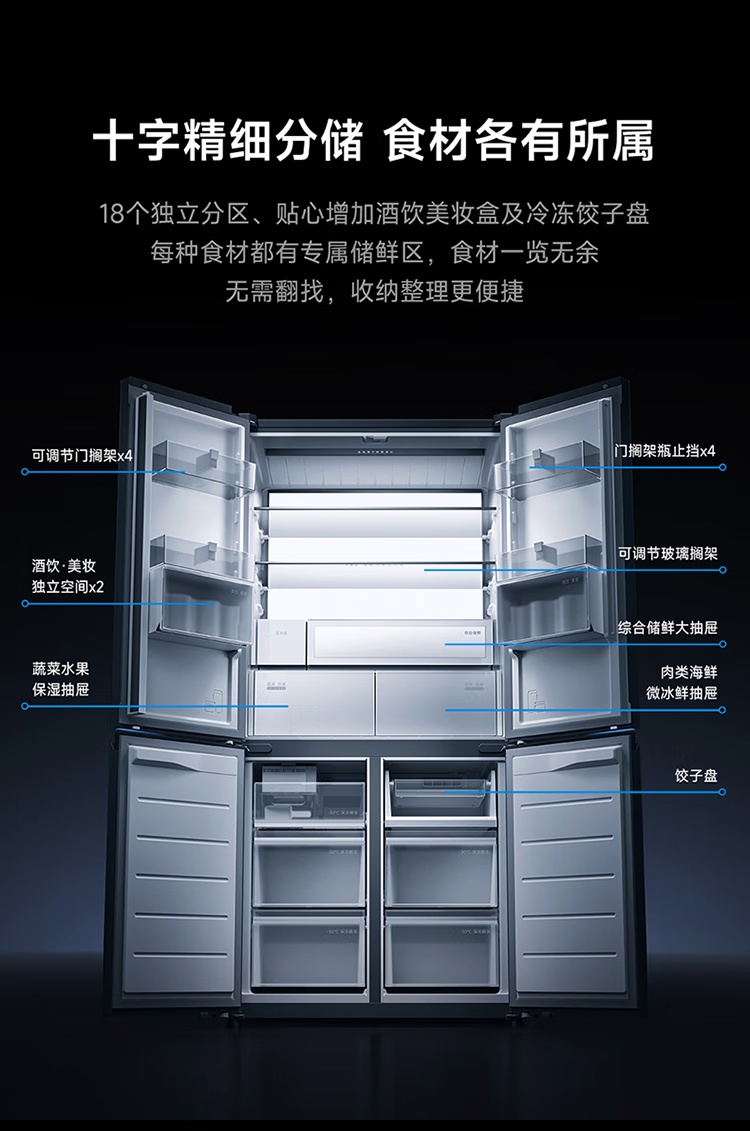 此外,它还支持米家微冰鲜,双系统独立控温,肉类零下鲜存 10 天不冻结;支持全自动制冰,全链路抗菌认证;全域离子净化 2.0,大肠杆菌去除率超 99.999%。附参数详情如下: