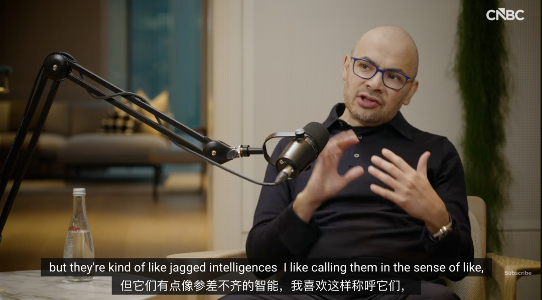 Hassabis 用了一个非常精准且形象的词来描述这种状态:「参差不齐的智能」(Jagged Intelligence)。