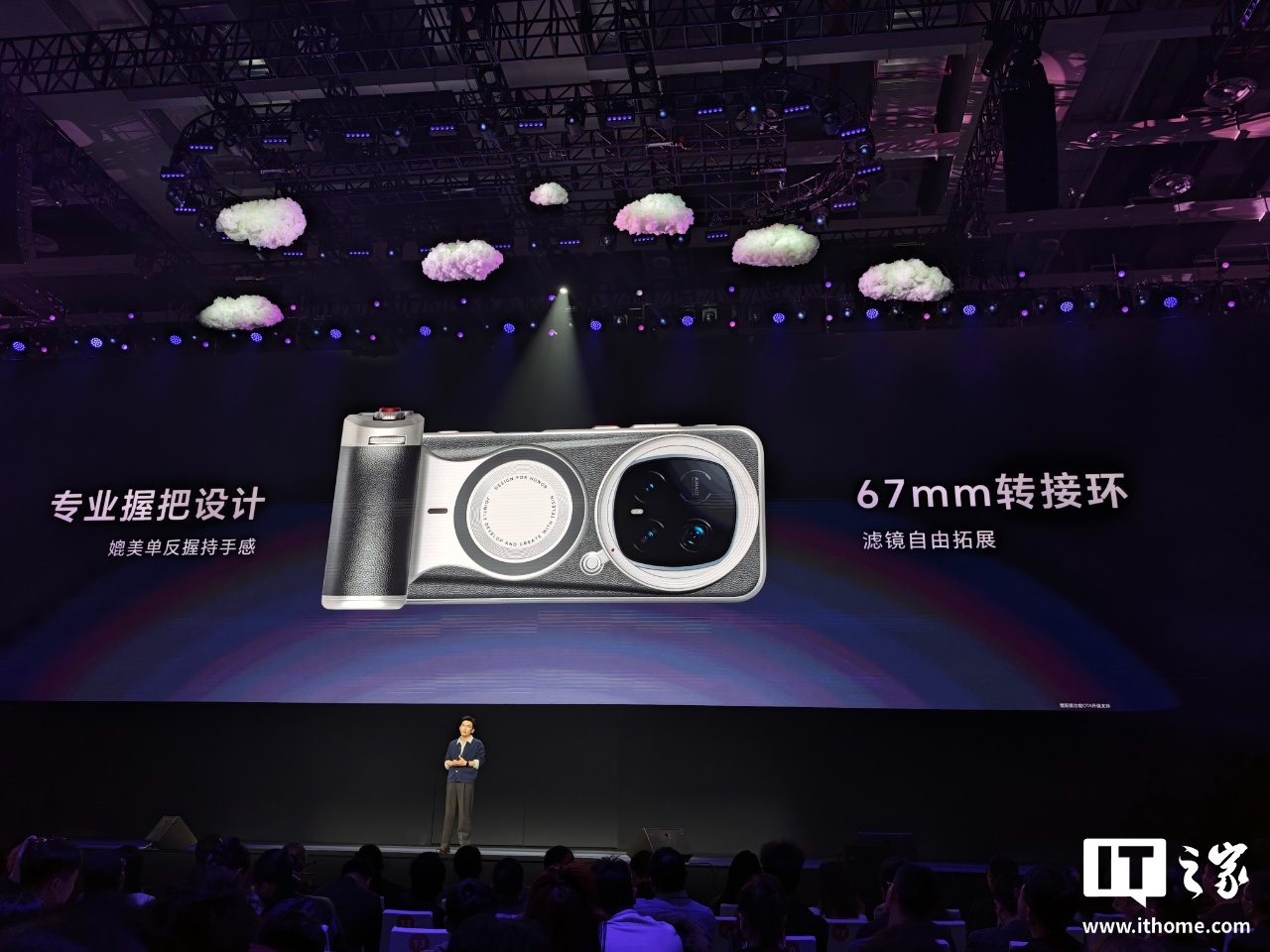 同时,这台手机还支持安装专业影像套装,内含磁吸摄影手柄,可以让拍照握持手感更好,号称“媲美单反”,手机壳上带有 67mm 滤镜转接环,还可以装上 200mm 夜神长焦增距镜,采用开普勒镜头架构,带来更好的远摄画质。