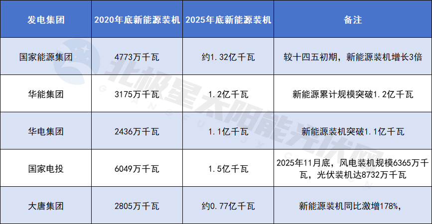 (2025年数据根据各发电集团新年贺词、官网等渠道统计,口径不同或有偏差)