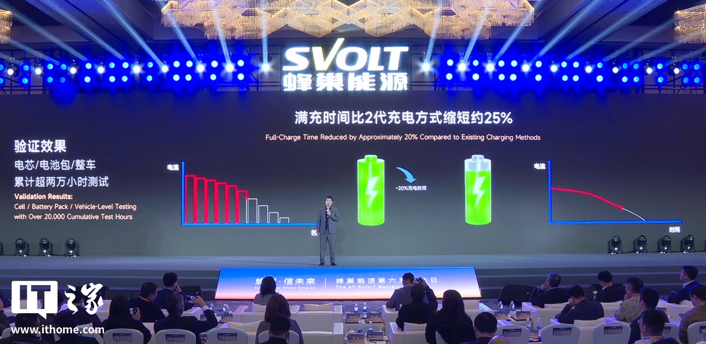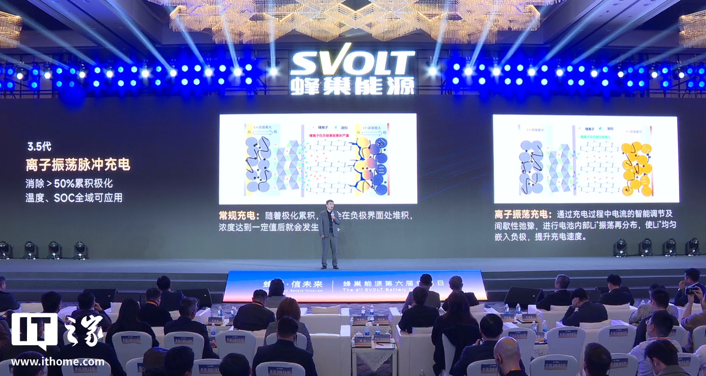 1 月 13 日消息,在今日的蜂巢能源第六届电池日活动中,蜂巢能源官方发布了 3.5 代离子振荡脉冲充电技术。