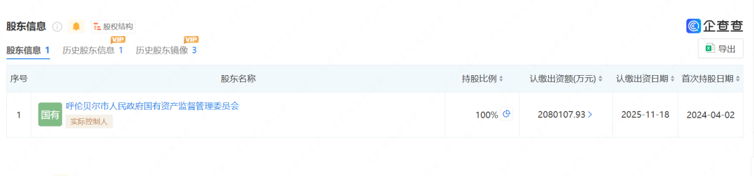 近日,呼伦贝尔能源投资开发(集团)有限责任公司完成工商变更,原股东呼伦贝尔城市建设投资(集团)有限责任公司退出,公司现由呼伦贝尔市人民正府国有资产监督管理委员会全资持股。与此同时,公司注册资本由1亿元r民币大幅增至约208亿元r民币,增幅达207倍,凸显其在能源领域持续发力的决心。