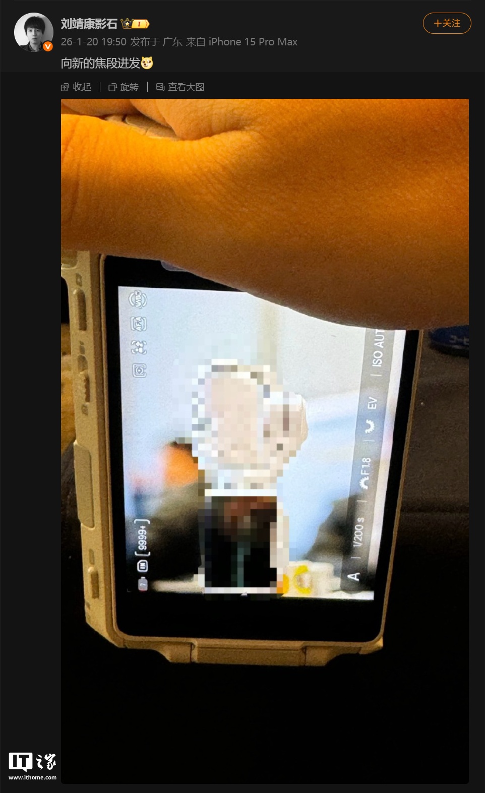 1 月 20 日消息,影石创始人刘靖康今晚在微博晒出了一台神秘新机,疑似是相机新品。