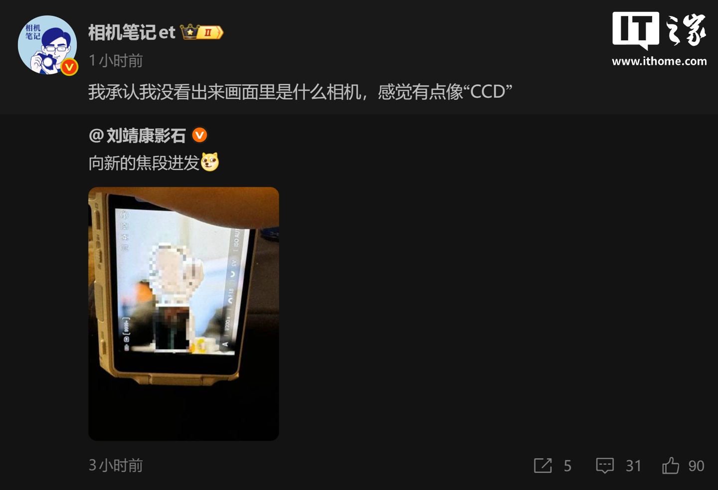 消息源 @独立摄影师联合会 随后转发该博文并表示:“之前就有渠道跟我说影石 Insta360 在开发无反相机,看来是真的有啊”;另一消息源 @相机笔记 et 则表示:“我承认我没看出来画面里是什么相机,感觉有点像‘CCD’”。