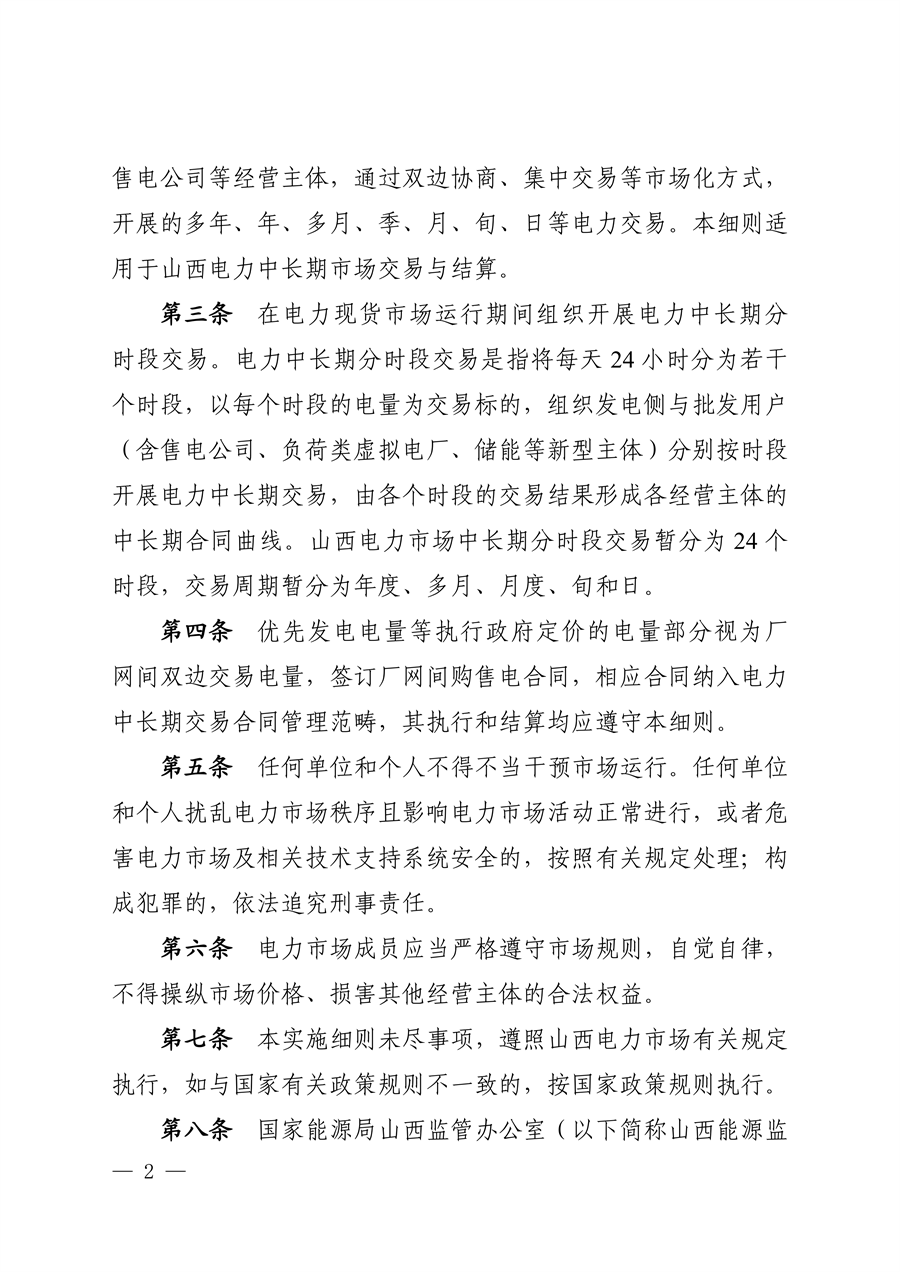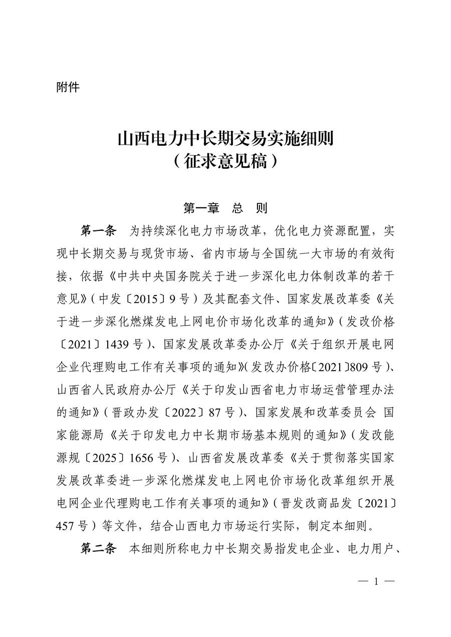 1月16日,山西能监办发布关于征求《山西电力中长期交易实施细则(征求意见稿)》意见的函。文件提到,在电力现货市场运行期间组织开展电力中长期分时段交易。电力中长期分时段交易是指将每天24小时分为若干个时段,以每个时段的电量为交易标的,组织发电侧与批发用户(含售电公司、负荷类虚拟电厂、储能等新型主体)分别按时段开展电力中长期交易,由各个时段的交易结果形成各经营主体的中长期合同曲线。山西电力市场中长期分时段交易暂分为24个时段,交易周期暂分为年度、多月、月度、旬和日。
