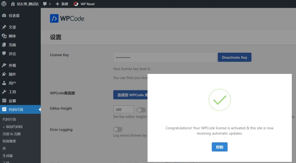安装并启用插件后,如未激活,输入“zhanzhangb”即可激活(不含引号),如下图: