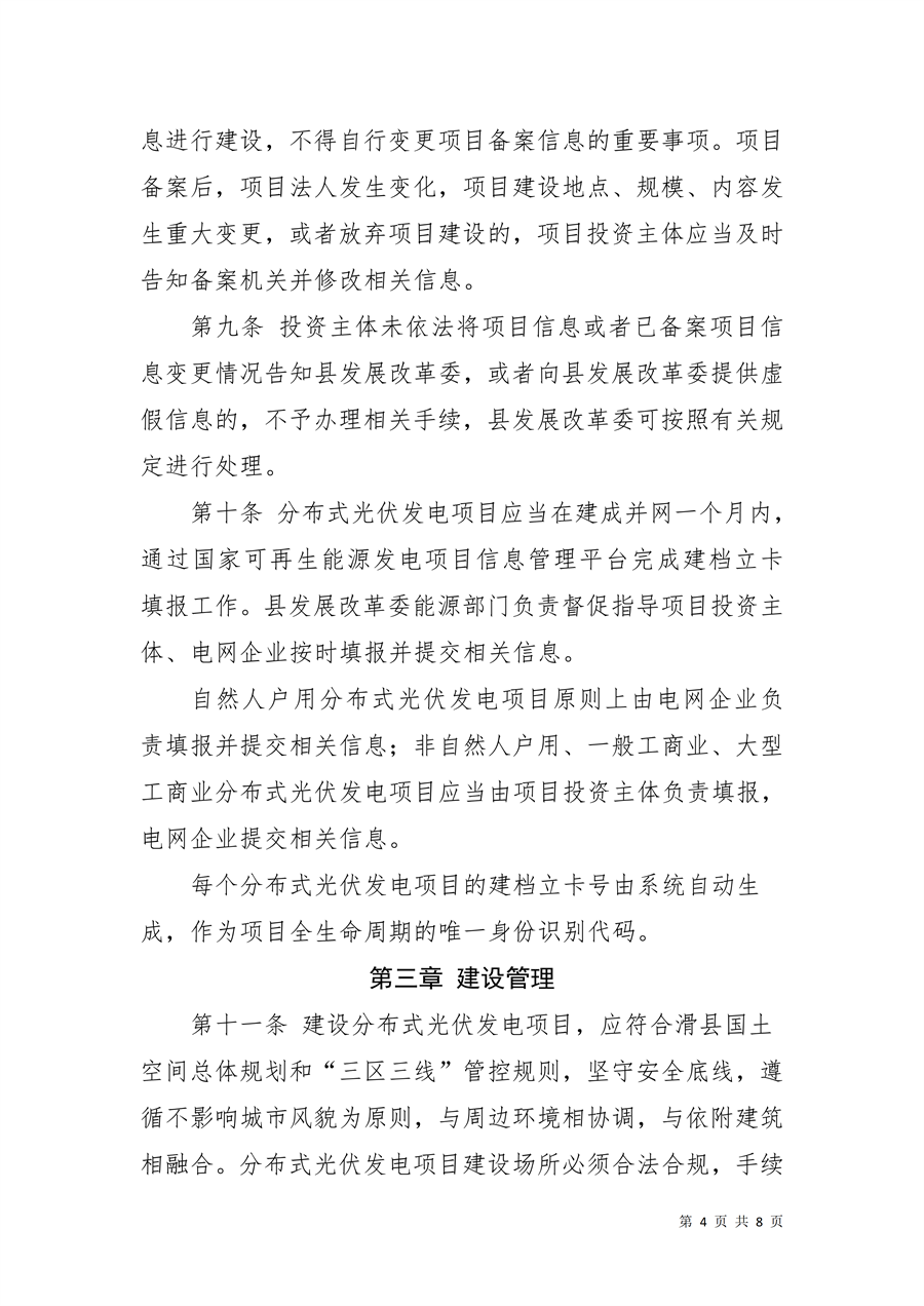 为规范管理我县中心城区分布式光伏发电项目,促进光伏产业健康有序发展,县发展改革委组织相关部门起草了《滑县中心城区分布式光伏发电项目管理暂行规定》,目前已完成前期研讨和初步论证。为广泛听取社会各界的意见和建议,进一步提高规范性文件制定的科学性和民主性,经报请县人民政府同意,现将《滑县中心城区分布式光伏发电项目管理暂行规定》全文予以公示。
