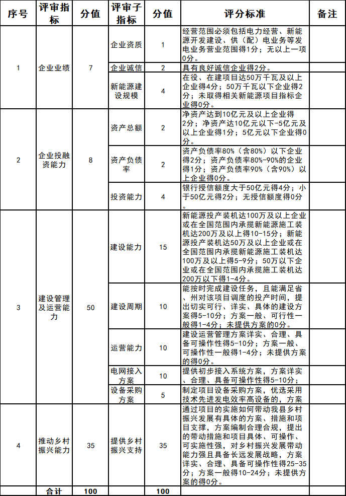 丘北县2025年第二批新能源项目资源配置重点评分指标