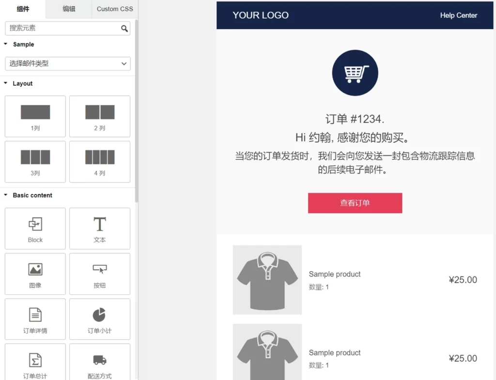 该插件为用户提供了足够的基础元素与 WooCommerce 元素以及开发工具来构建完整的电子邮件。可以轻松拖放、编辑和自定义电子邮件模板内的布局/内容,无需任何编码知识。