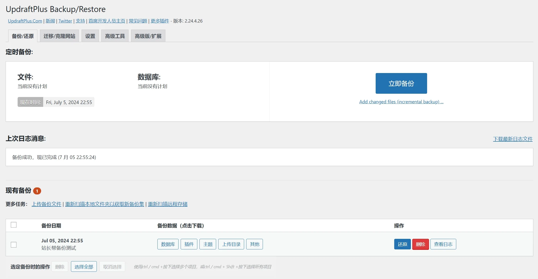 UpdraftPlus Premium 汉化版演示