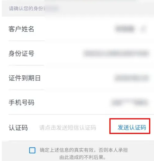 核对对信息后,点击发送认证码。