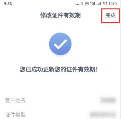 提示成功更新证件有效期,点击完成。