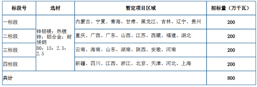 招标公告显示,该项目集采总容量为8GW。共划分为四个标段,如下: