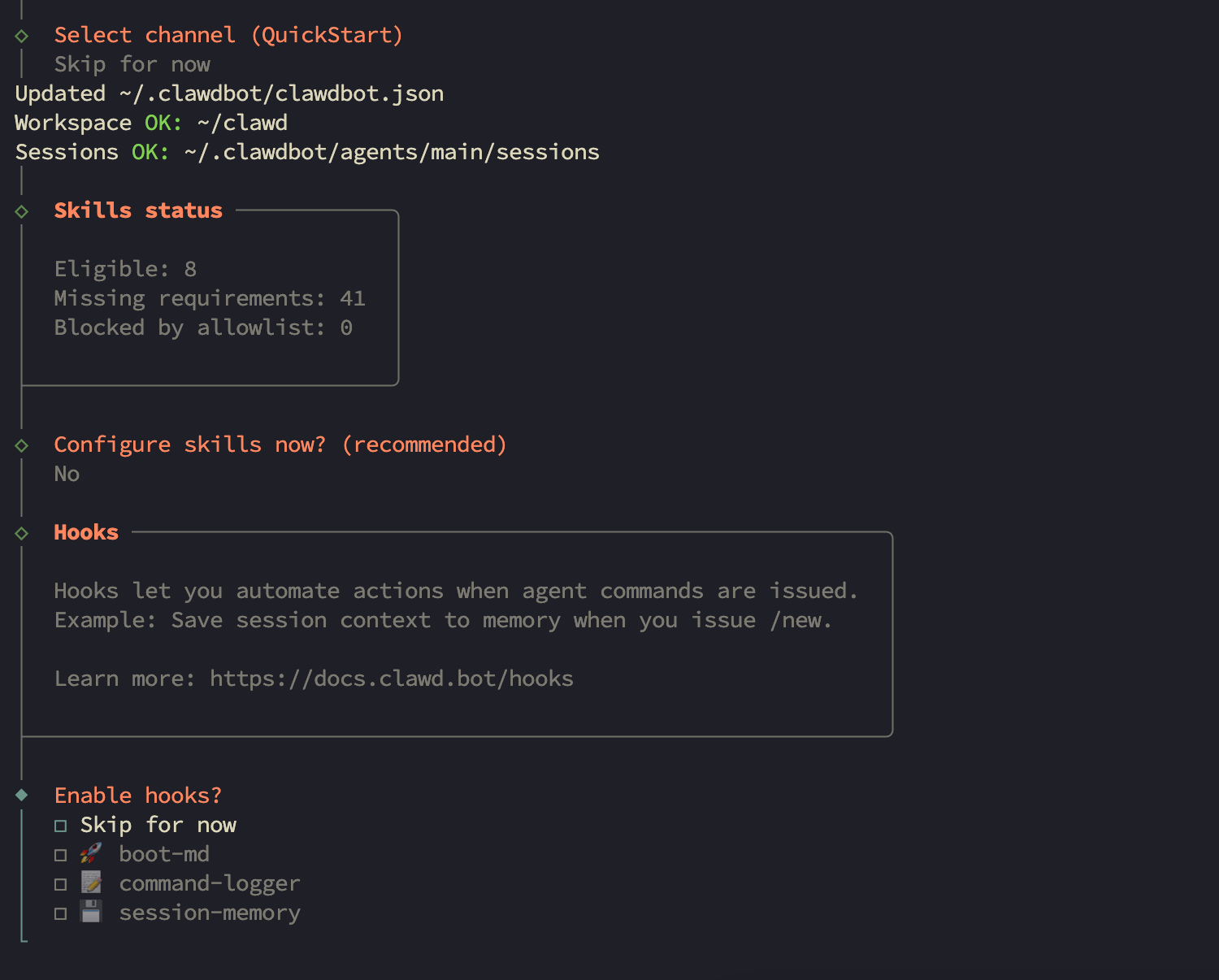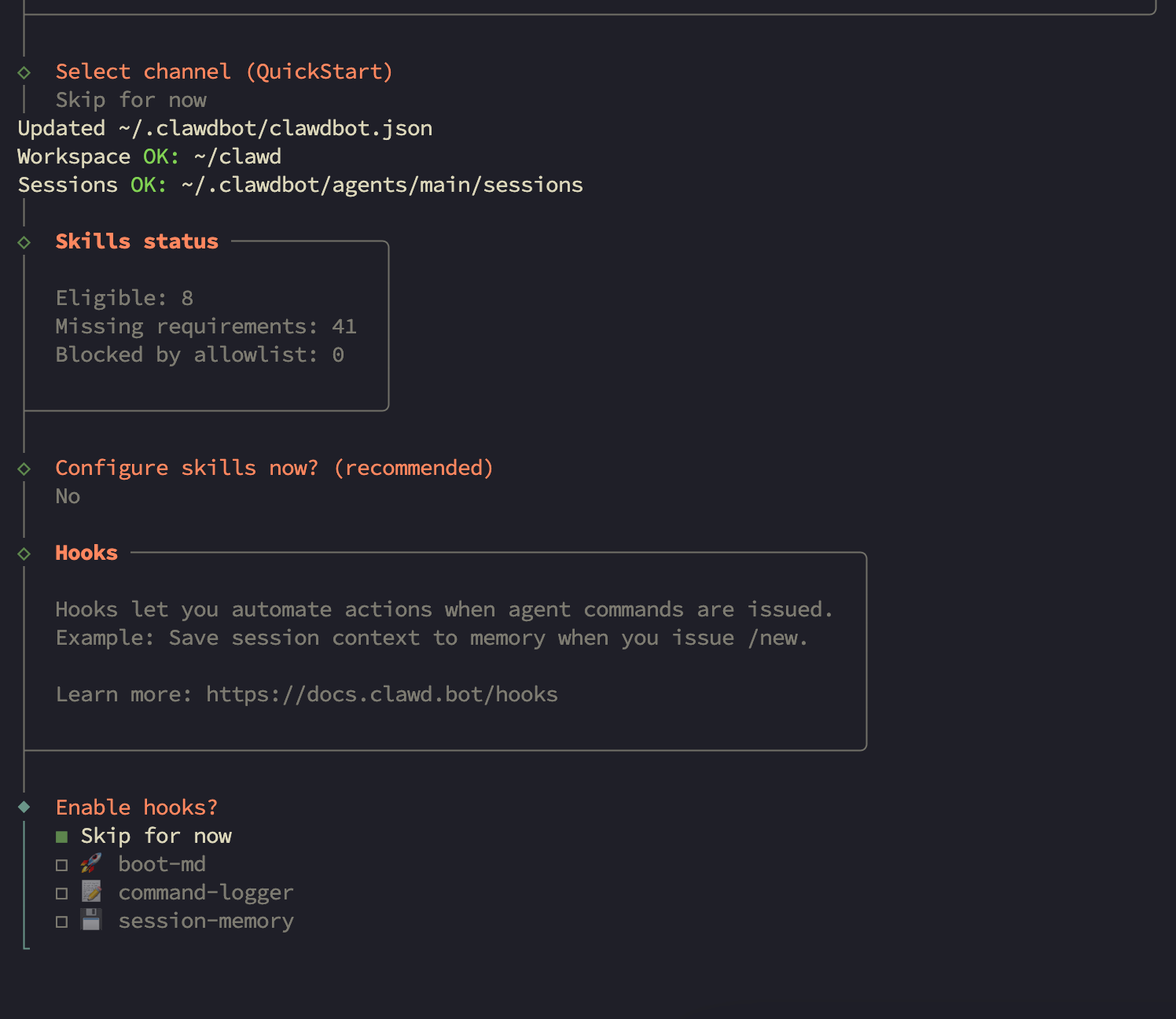 这些都准备好之后,Clawdbot 才真正“进到系统里”。