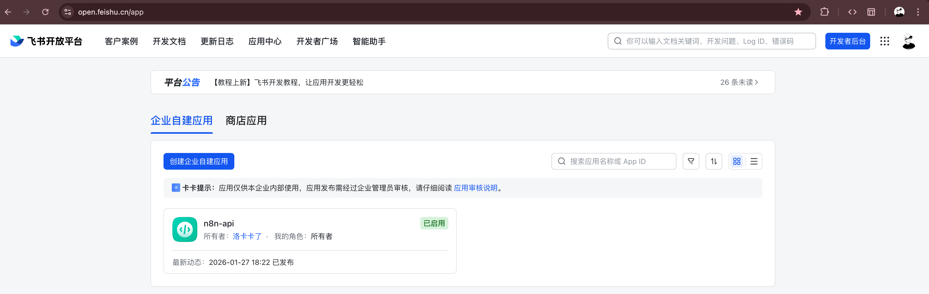 接下来要做的,就是回到 飞书开放平台,继续配置应用权限、事件订阅等内容,让飞书真正把消息推送过来。