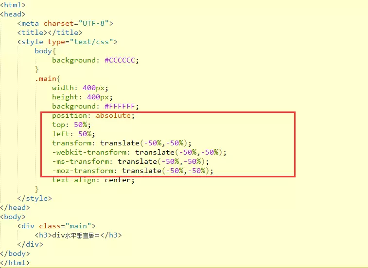div使用绝对定位position:absolute,并且设置left和top的值都为50%。使用css3的transform属性。transform:translate(-50%,-50%)。