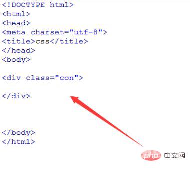 在test.html页面中,创建一个div,并设置其css类名为con,代码如下: