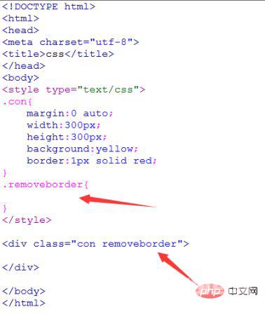 在css中,设置一个去除边框样式的类名removeborder,并把它加入div的class类属性中。