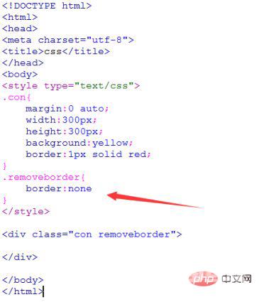 方法一:在类名为removeborder的样式中,使用border:none来去除div的边框显示,如下图所示: