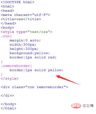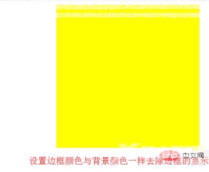 方法三:在类名为removeborder的样式中,使用border:1px solid yellow设置边框的颜色与背景颜色一样来去除div的边框显示,如下图所示: