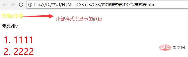 b、外部样式表在内部样式表上面