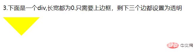 .div::before{ content: ''; width: 0; height: 0; border: 20px solid; position: absolute; bottom: -40px; left: 140px; border-color: #ff0 transparent transparent; }结果图: