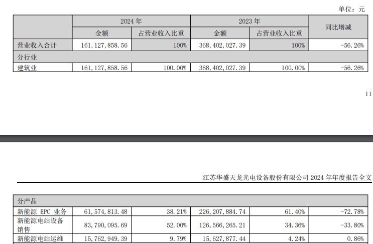 自主营业务停滞以来,天龙光电也积极转型自救,陆续开展事新能源电站的投资、新能源EPC工程、设备销售及电站运维等业务。2024年度报告显示,其新能源EPC及电站运维业务营业收入占比约48%。并新增新能源工程履约项目签约3个,运维项目续约7个,为业绩带来支撑。