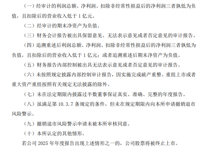 但退市风险并未解除,结合天龙光电1月20日关于公司股票可能被终止上市的第二次风险提示公告,触及利润总额、净利润及扣非净利润为负值,营业收入低于1亿元等情形,股票仍将被终止上市。2025年前三季度,天龙光电营业收入超5100万,距离1亿元的“保壳红线”仍有近一半的差距。