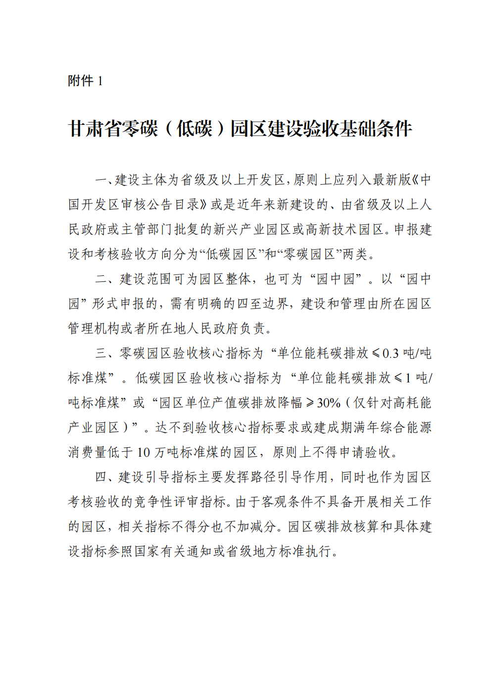 附件:1.甘肃省零碳(低碳)园区建设验收基础条件