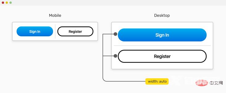 我们有一组按钮。在移动设备上,我们希望它们彼此相邻(每个按钮包装器占据其父元素的50%),而在桌面设备上,每个按钮都应该占据其父元素的全部宽度。该怎么做?