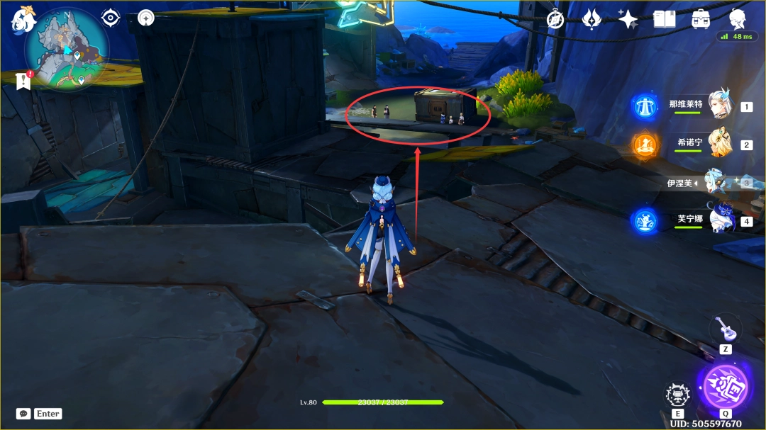 1.这里我们传送到星砂滩西南方的锚点,来到下图位置